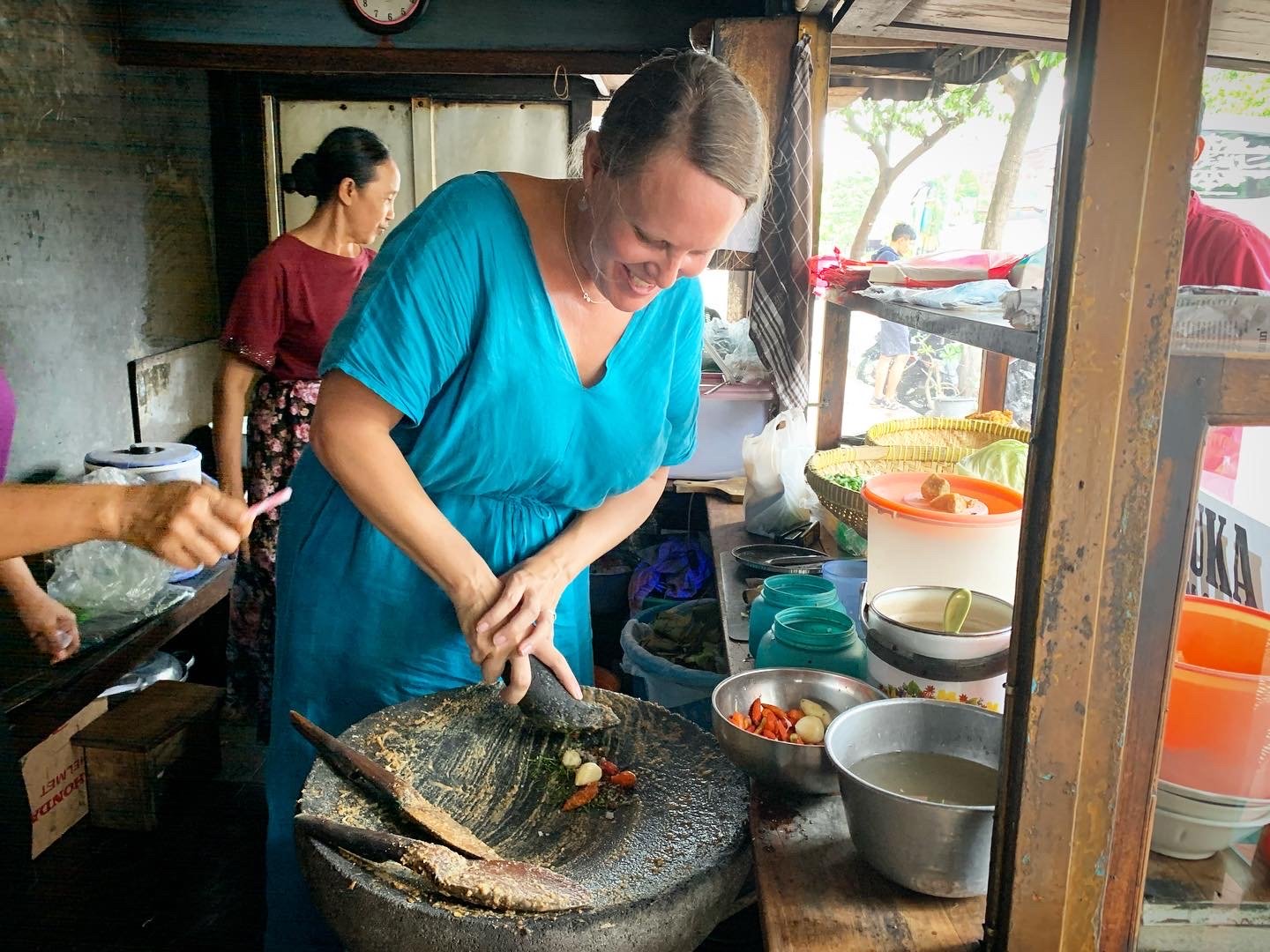 Cooking lotek for local workers in Yogyakarta, Java, Indonesia - 2021